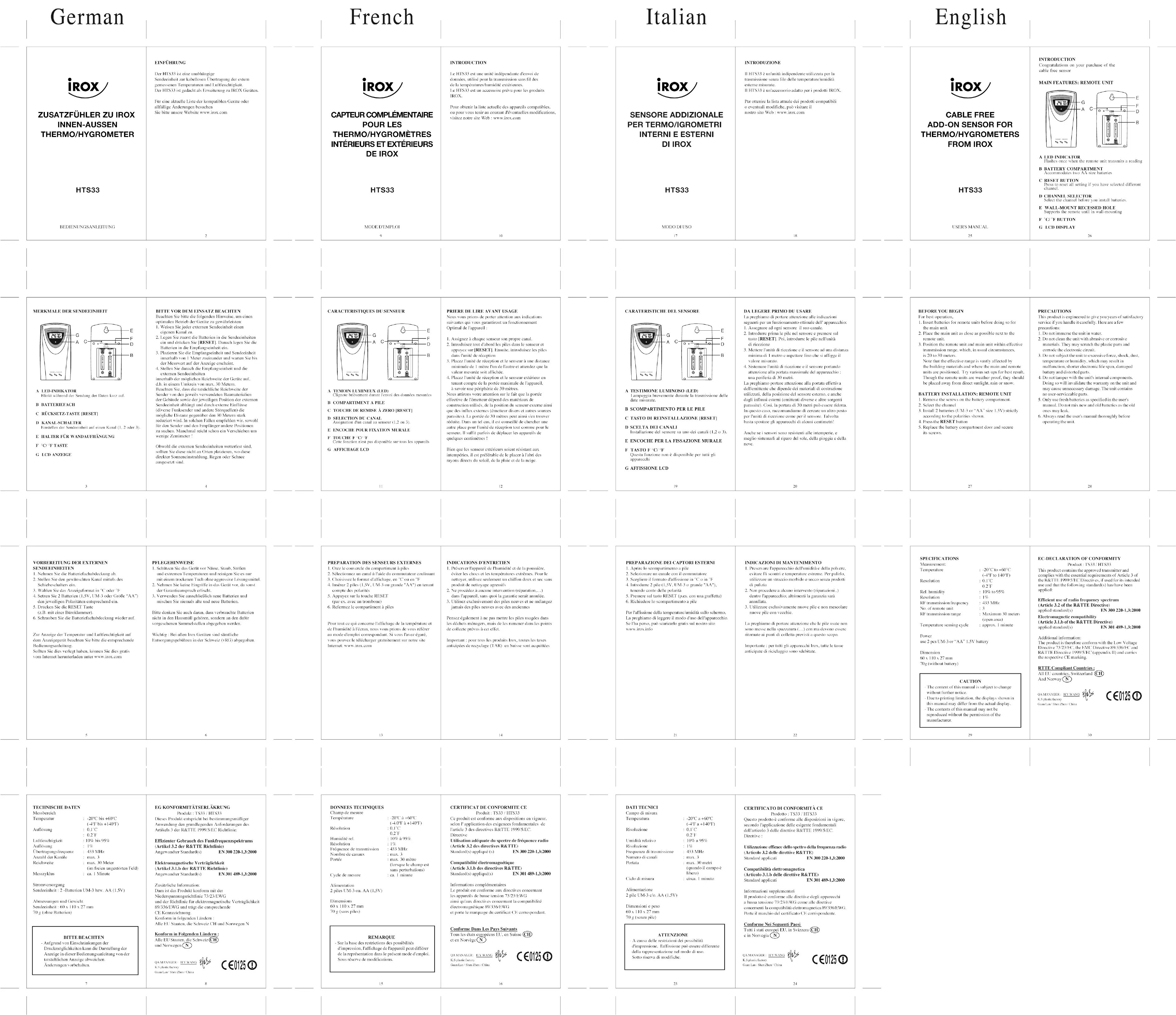 Téléchargez la notice de votre Thermomètre au format PDF gratuitement ! Retrouvez votre notice HTS33 - IROX et reprennez votre appareil électronique en main. Sur cette page sont publiés tous les documents nécessaires à l'utilisation de votre appareil HTS33 de la marque IROX.