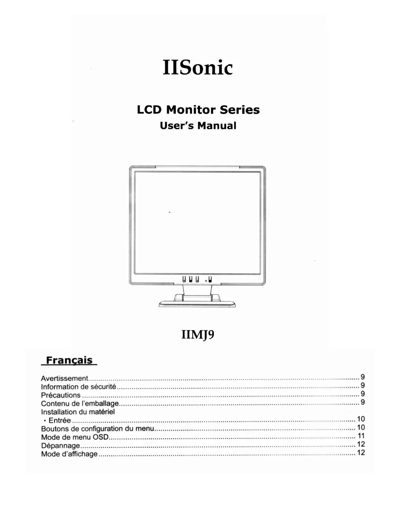 IIMJ9 - Écran d'ordinateur IISONIC - Notice d'utilisation et mode d'emploi gratuit