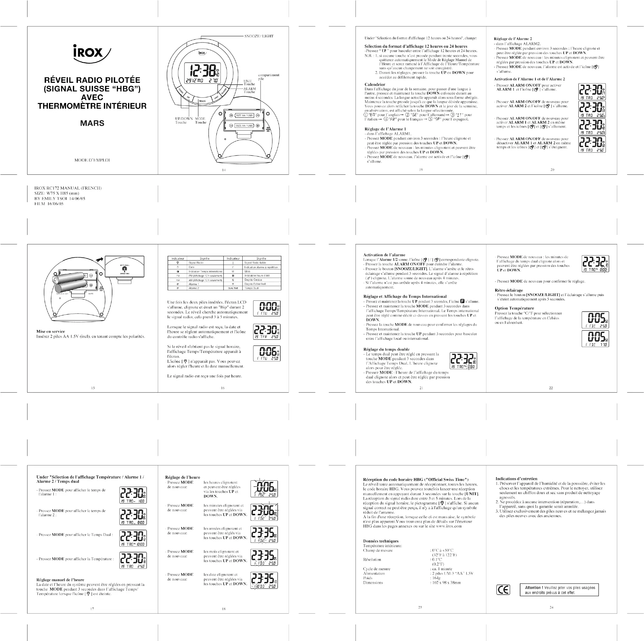 MARS - Réveil radio IROX - Notice d'utilisation et mode d'emploi gratuit