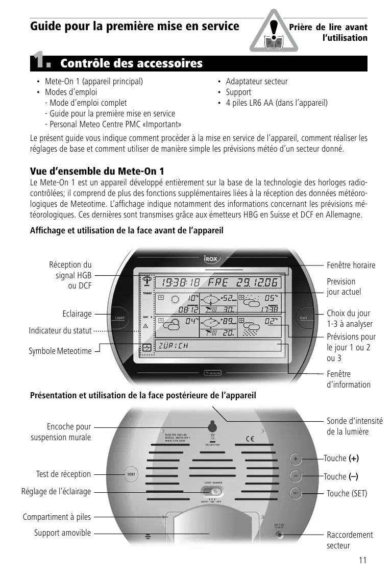 Le present guide vous indique comment procéder à la mise en service de l'appareil, comment réaliser les réglages de base et comment utiliser de manière simple les prévisions météo d'un secteur donné.