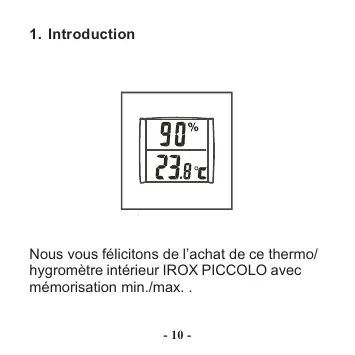 Nous vous félicitons de l’achat de ce thermo/ hygromètre intérieur IROX PICCOLO avec mémorisation min./max. .