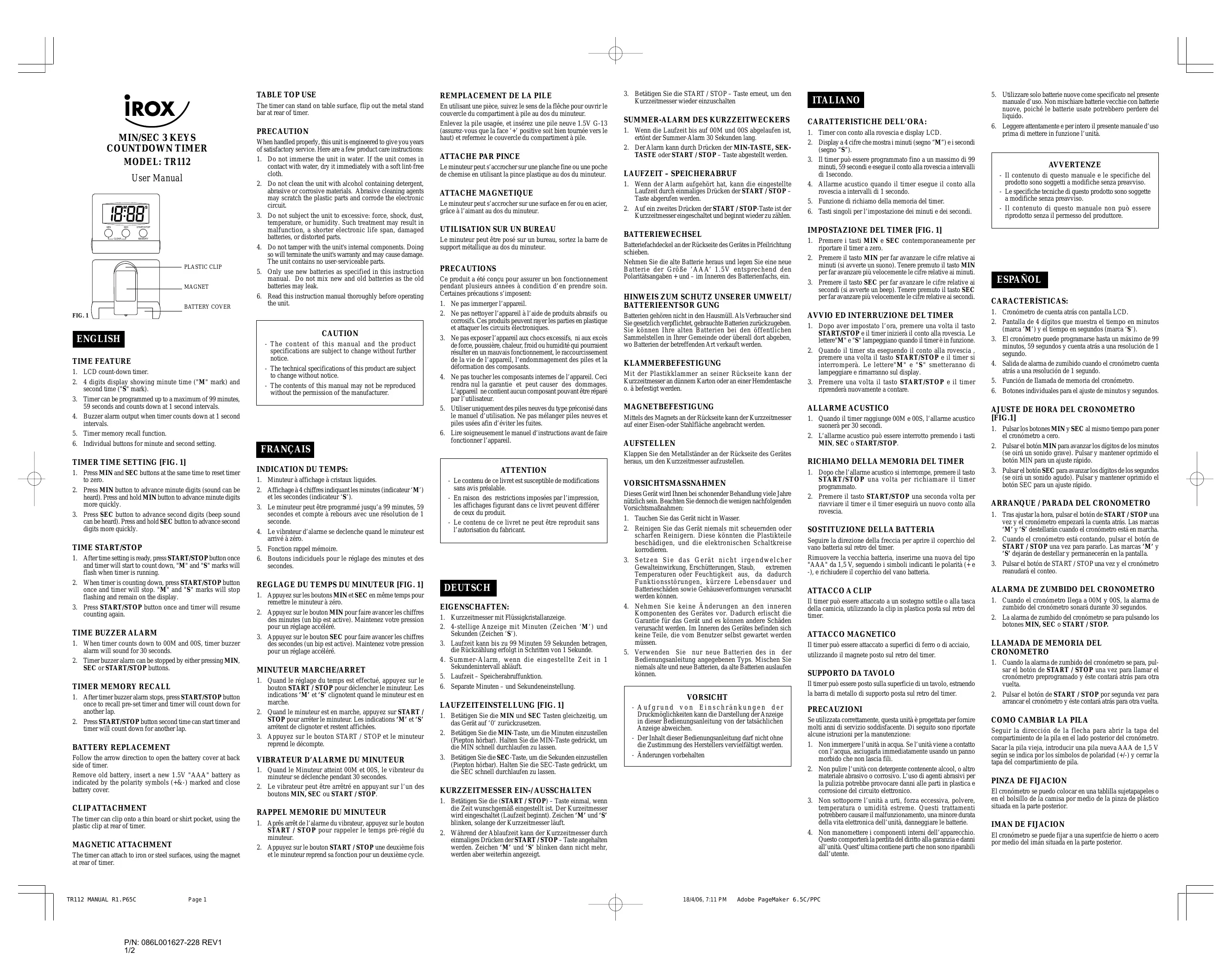 Retrouvez gratuitement la notice de l'appareil TR112 IROX au format PDF.