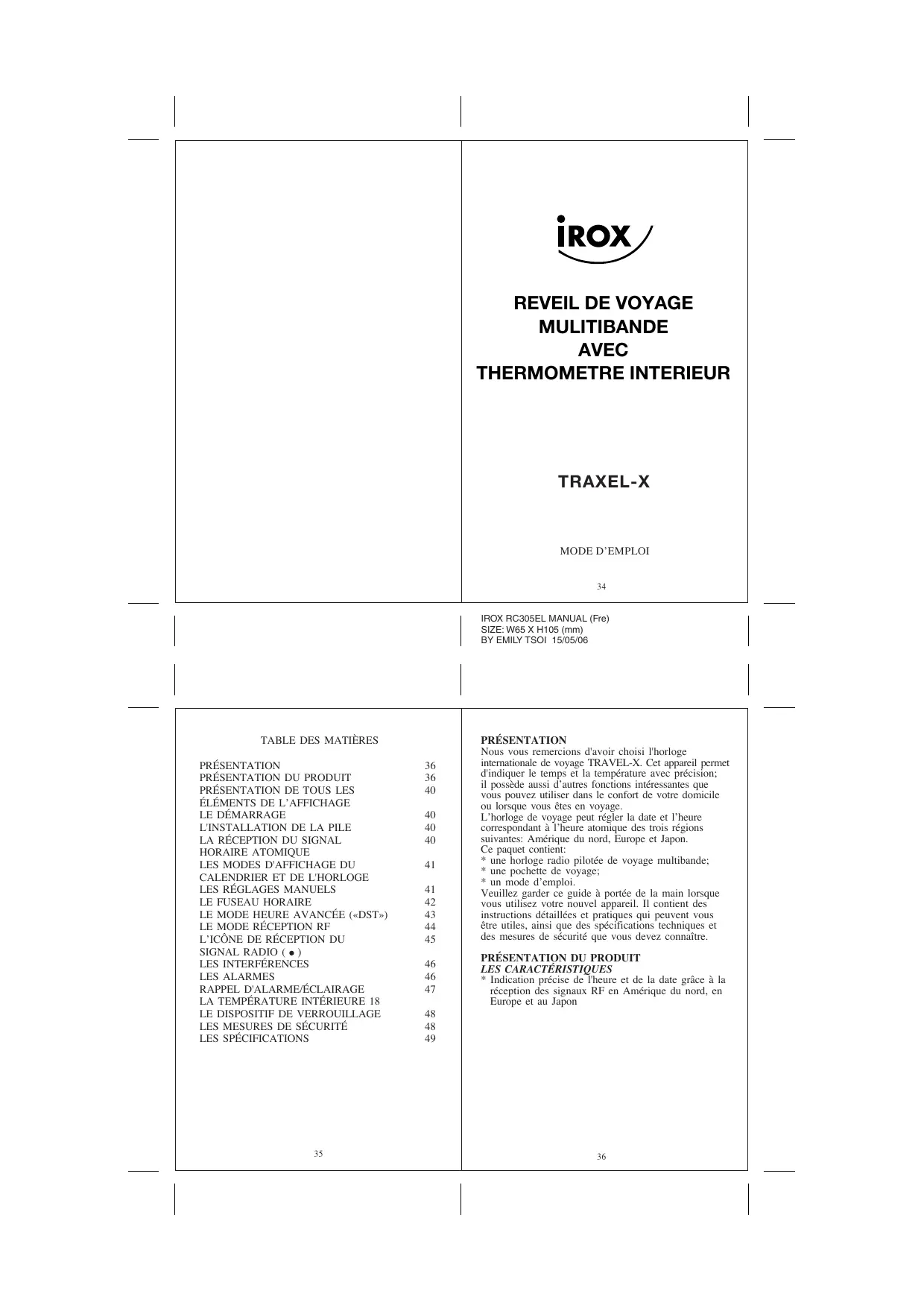 TRAVEL X - Réveil IROX - Notice d'utilisation et mode d'emploi gratuit