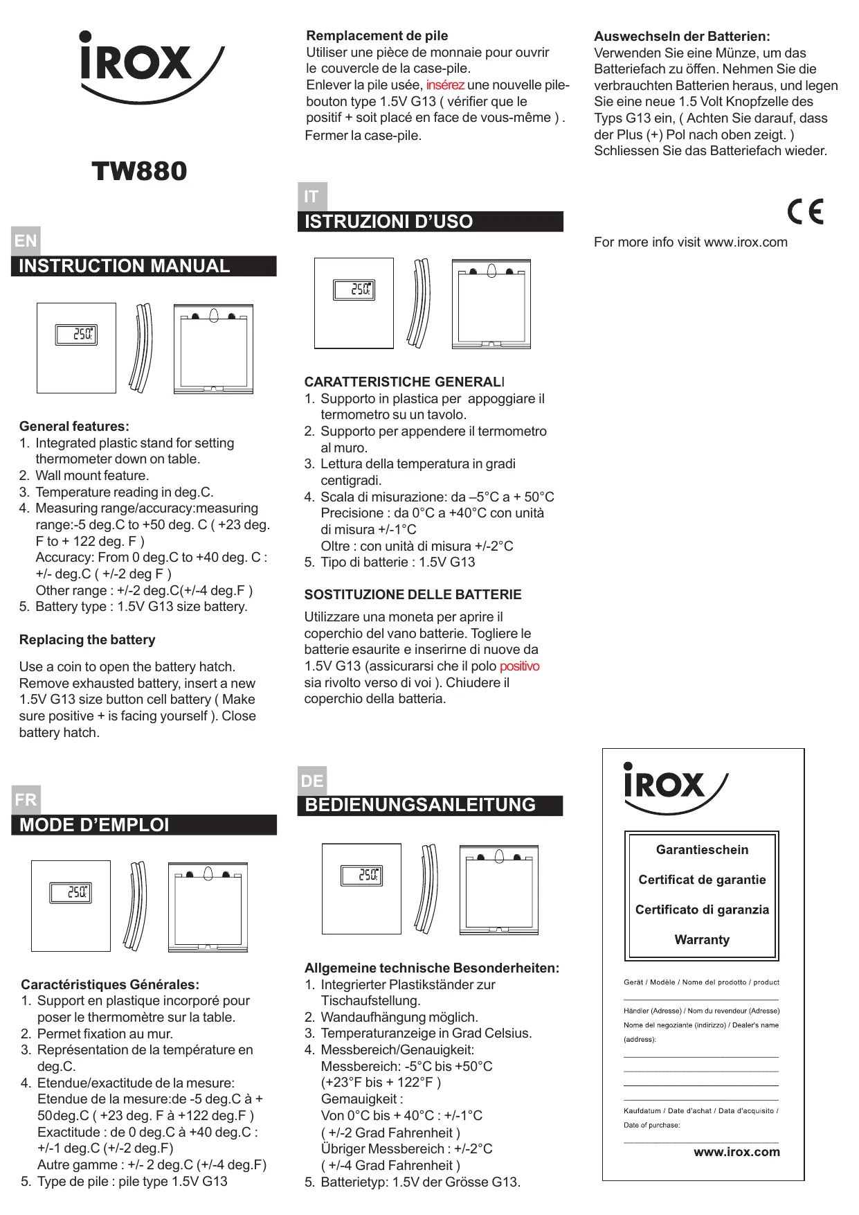 TW880 - Thermomètre IROX - Notice d'utilisation et mode d'emploi gratuit