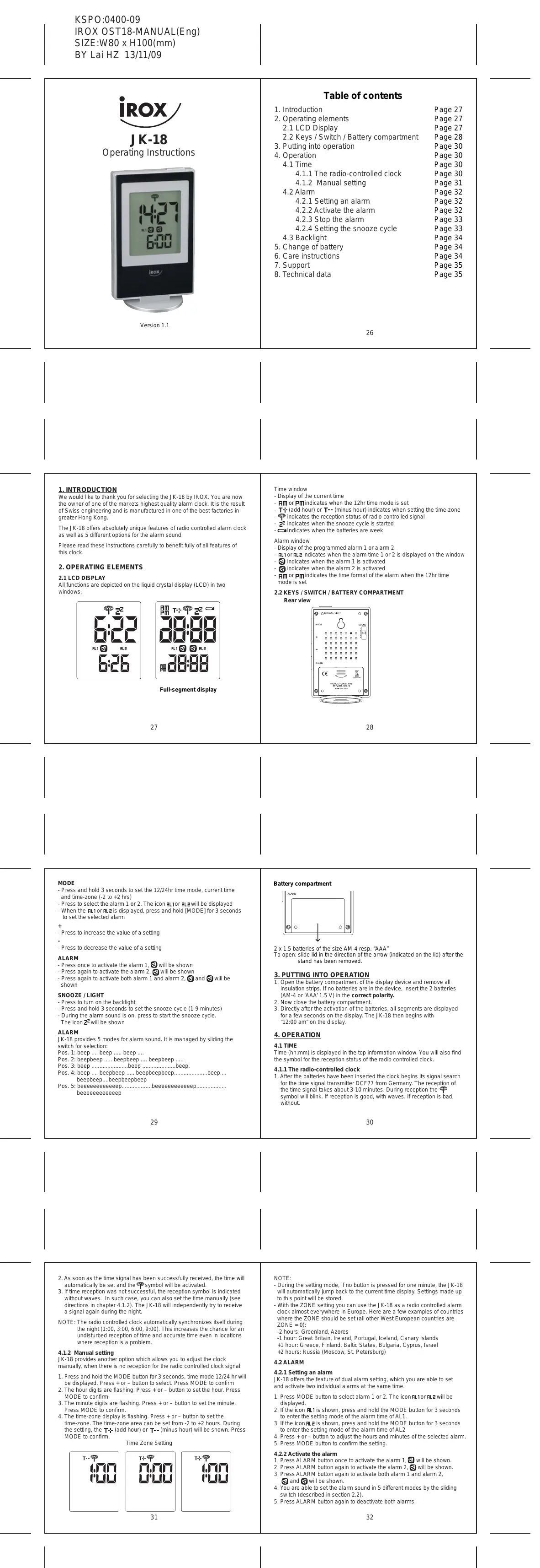JK-18 - Réveil numérique IROX - Notice d'utilisation et mode d'emploi gratuit