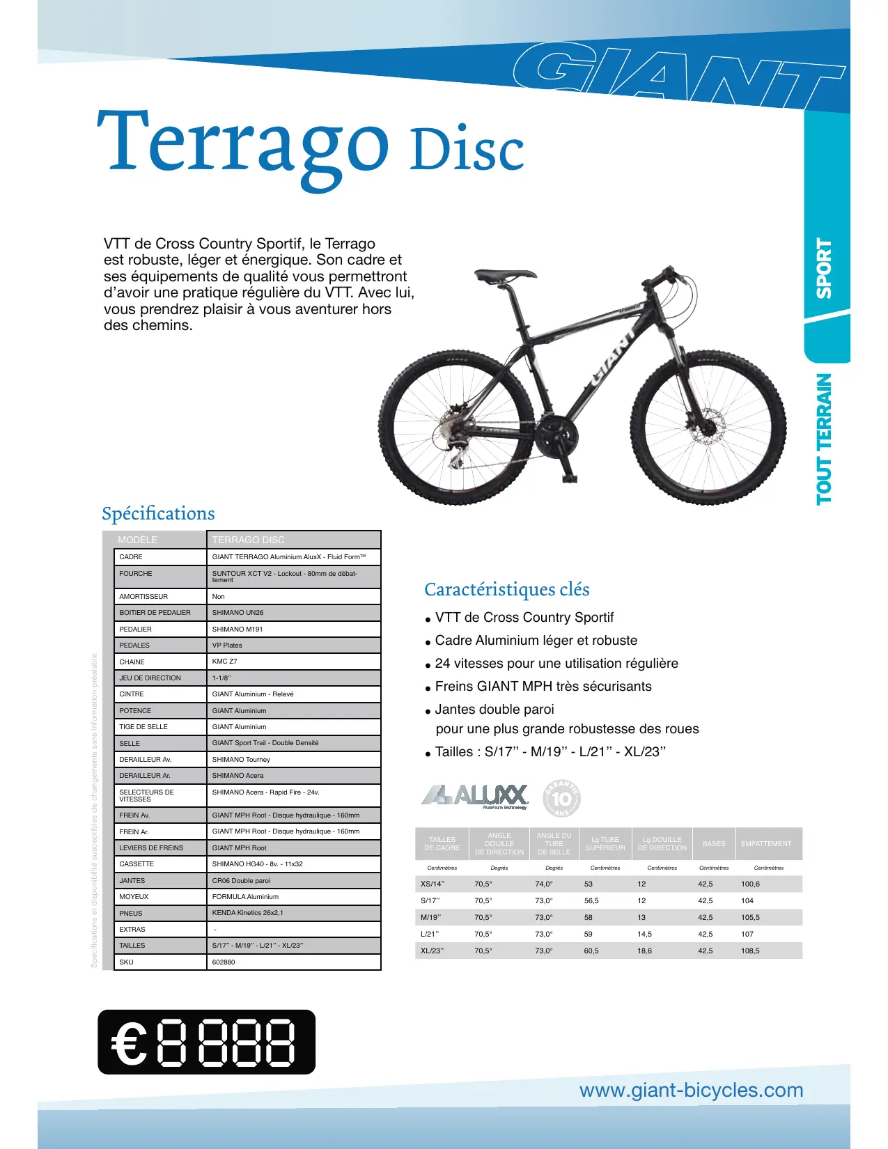 | Type de produit | Vélo de montagne GIANT BICYCLES TERRAGO DISC |
