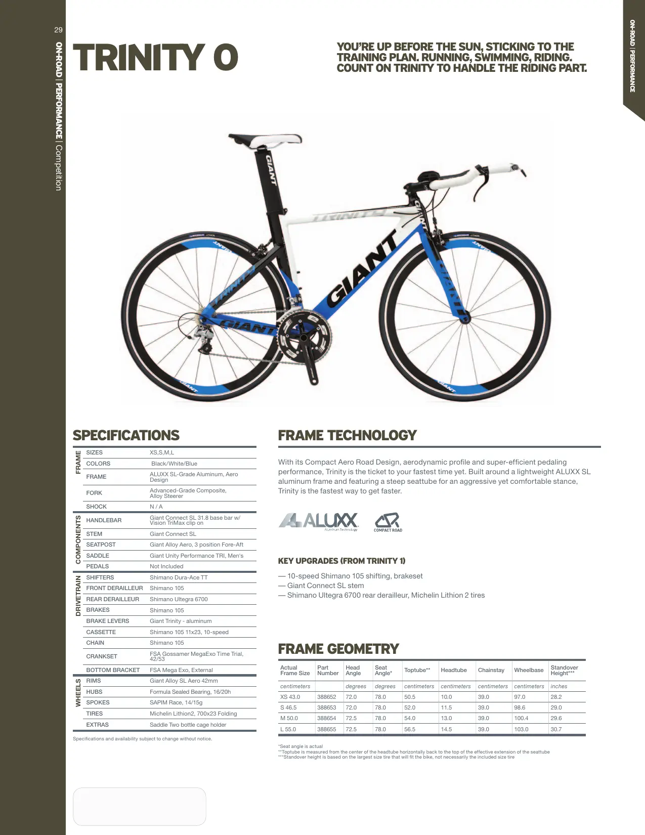 TRINITY 0 - Vélo de route GIANT BICYCLES - Notice d'utilisation et mode d'emploi gratuit