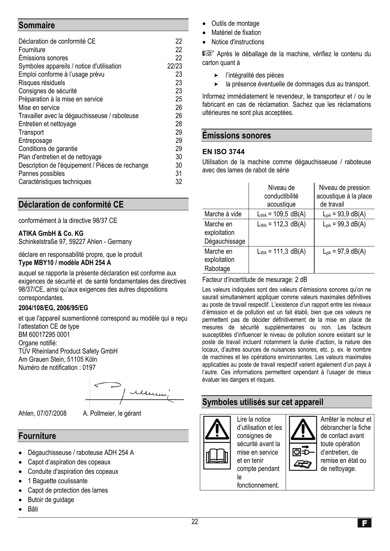 ADH 254 A - Raboteuse ATIKA - Notice d'utilisation et mode d'emploi gratuit