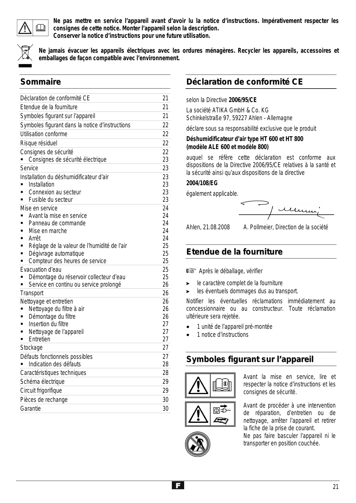 ALE 800 - Déshumidificateur d'air ATIKA - Notice d'utilisation et mode d'emploi gratuit