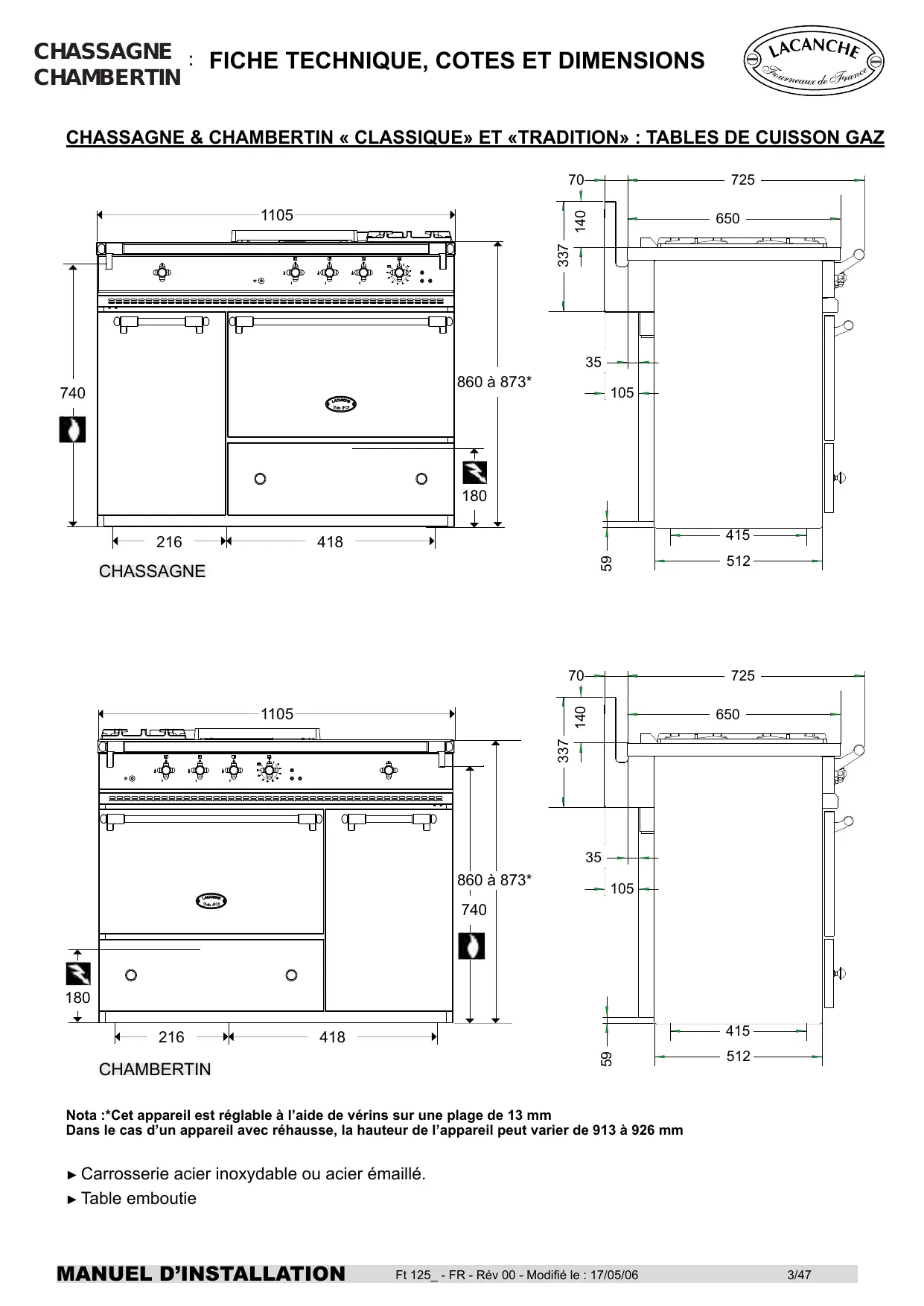 LG1141CT - Cuisinière LACANCHE - Notice d'utilisation et mode d'emploi gratuit