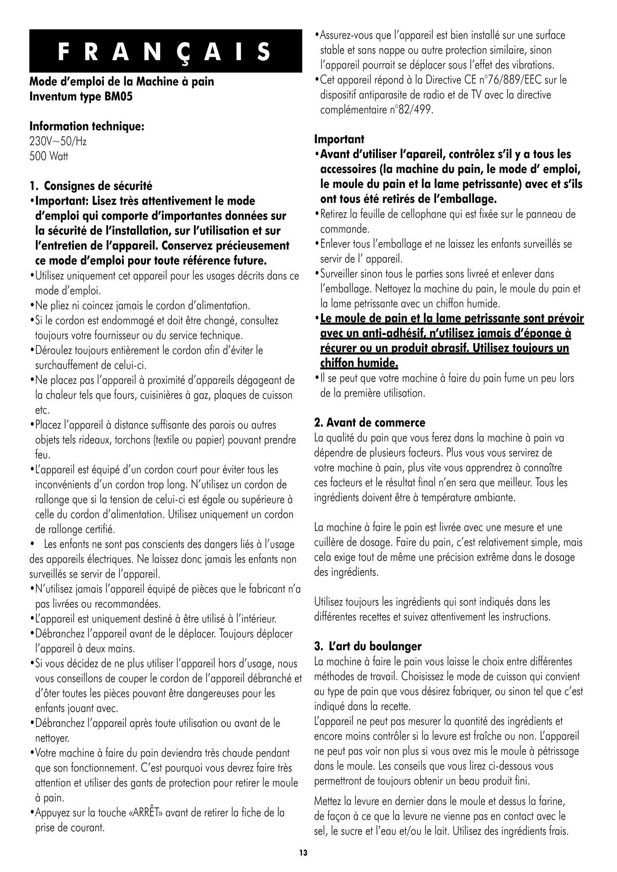Mode d'emploi de la Machine à pain Inventum type BM05