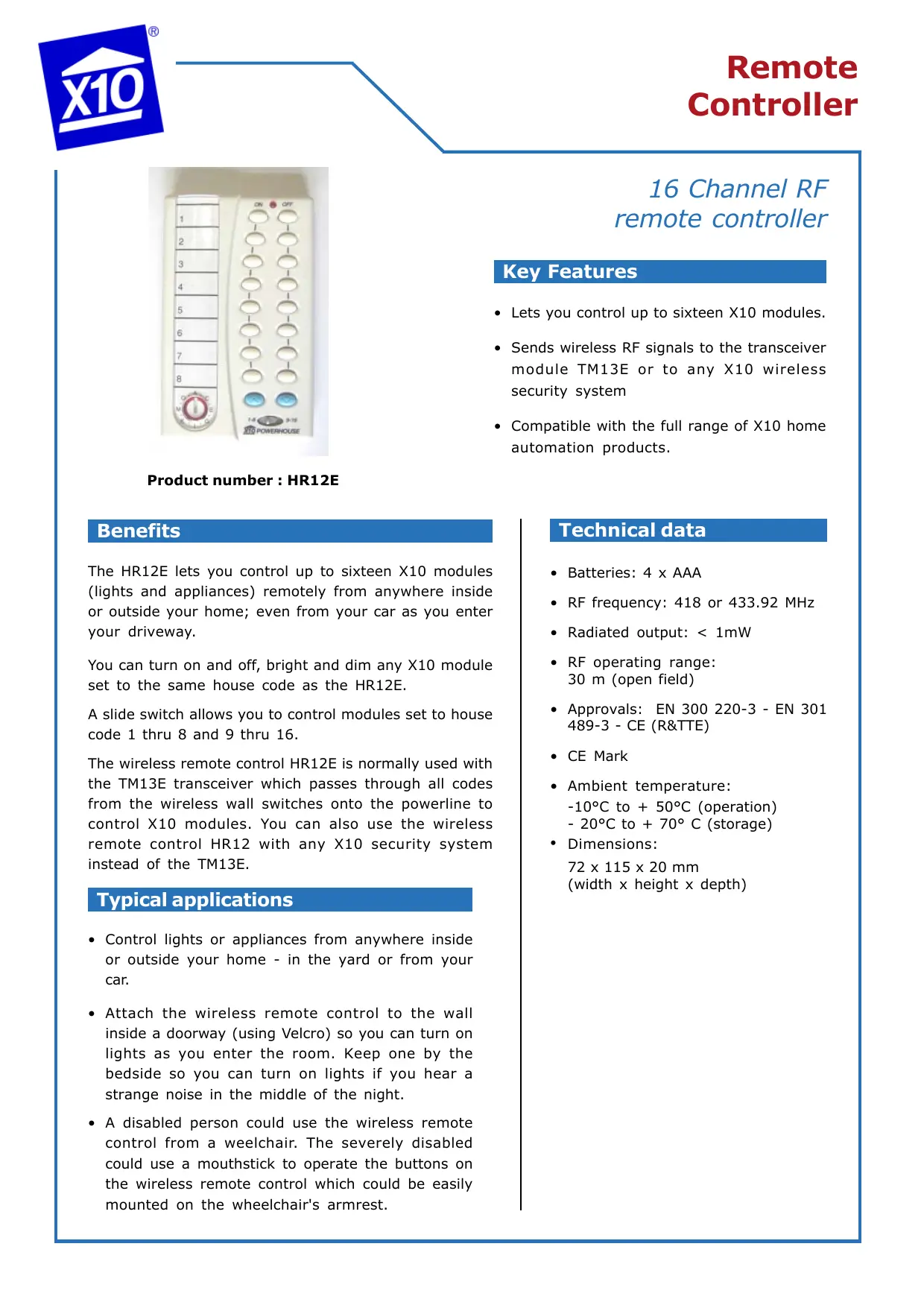HR12E - Télécommande X10 - Notice d'utilisation et mode d'emploi gratuit