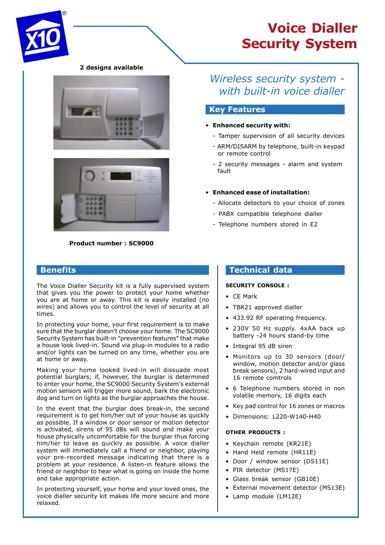 SC9000 - Système d'alarme X10 - Notice d'utilisation et mode d'emploi gratuit