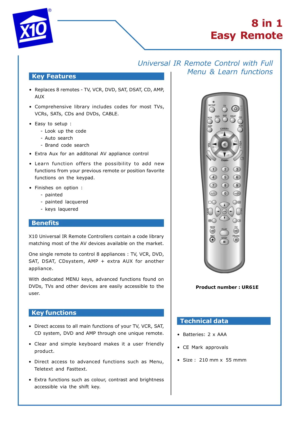 UR61E - Télécommande X10 - Notice d'utilisation et mode d'emploi gratuit
