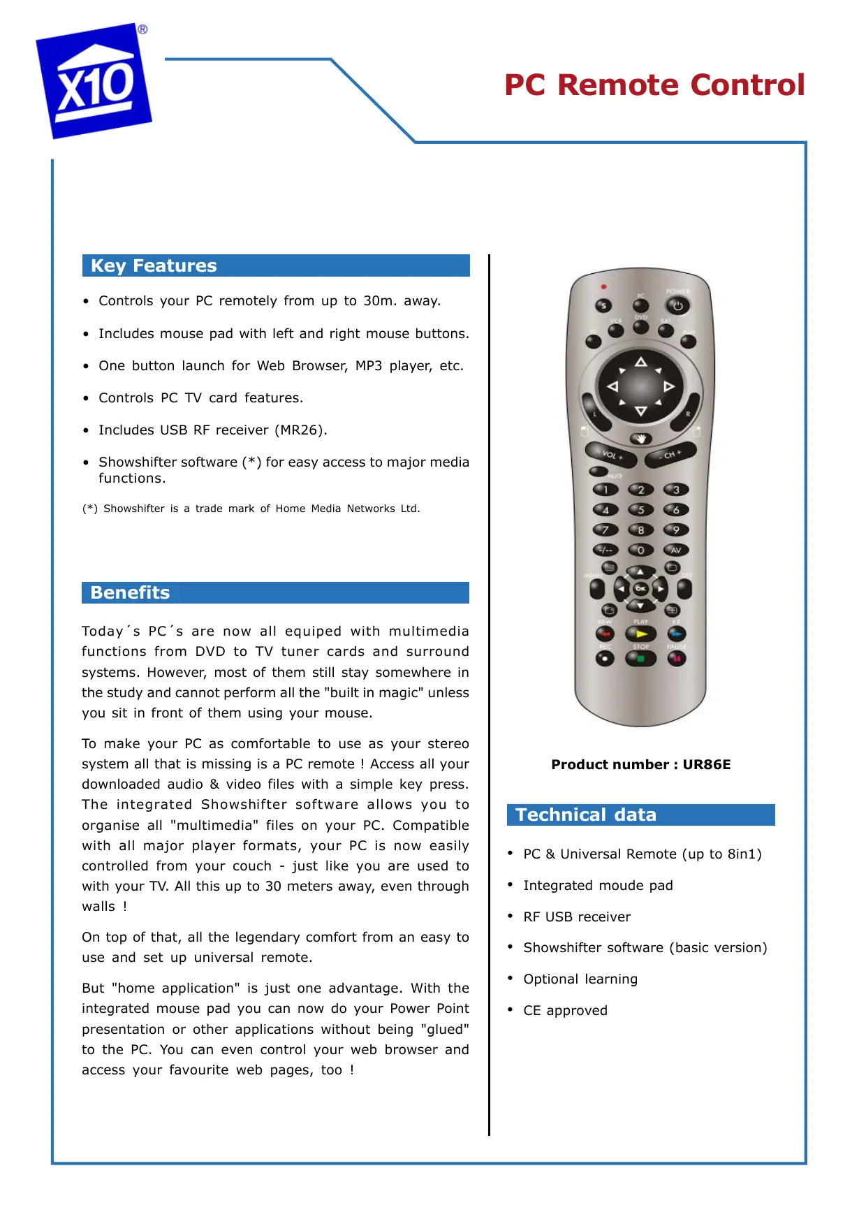 UR86E - Télécommande X10 - Notice d'utilisation et mode d'emploi gratuit