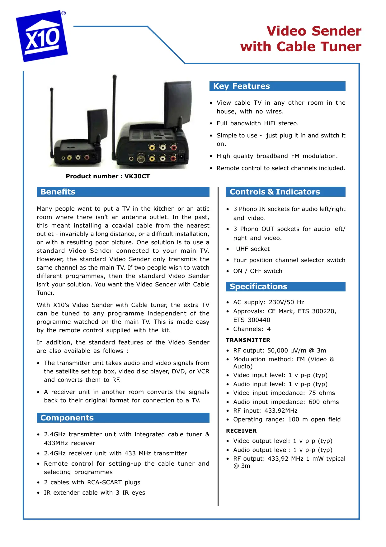 VK30CT - Émetteur vidéo sans fil X10 - Notice d'utilisation et mode d'emploi gratuit