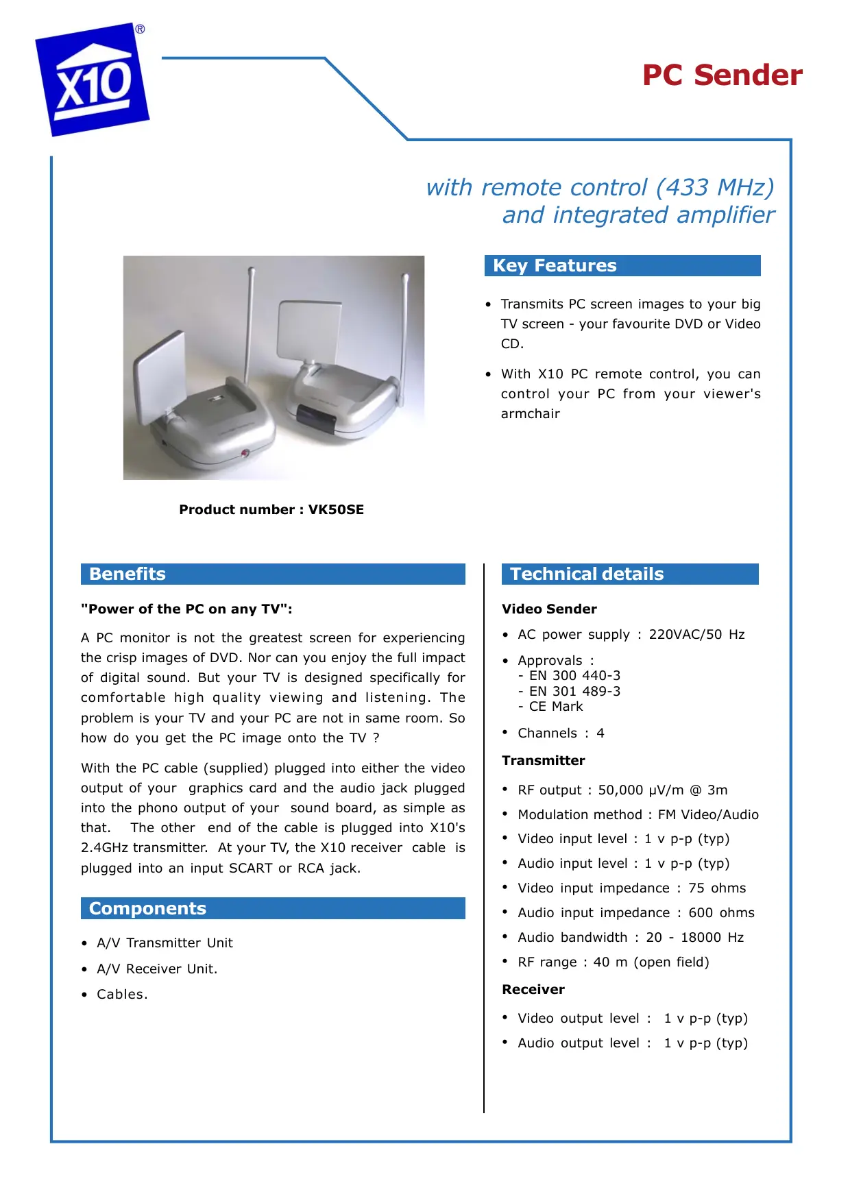 VK50SE - Émetteur vidéo X10 - Notice d'utilisation et mode d'emploi gratuit