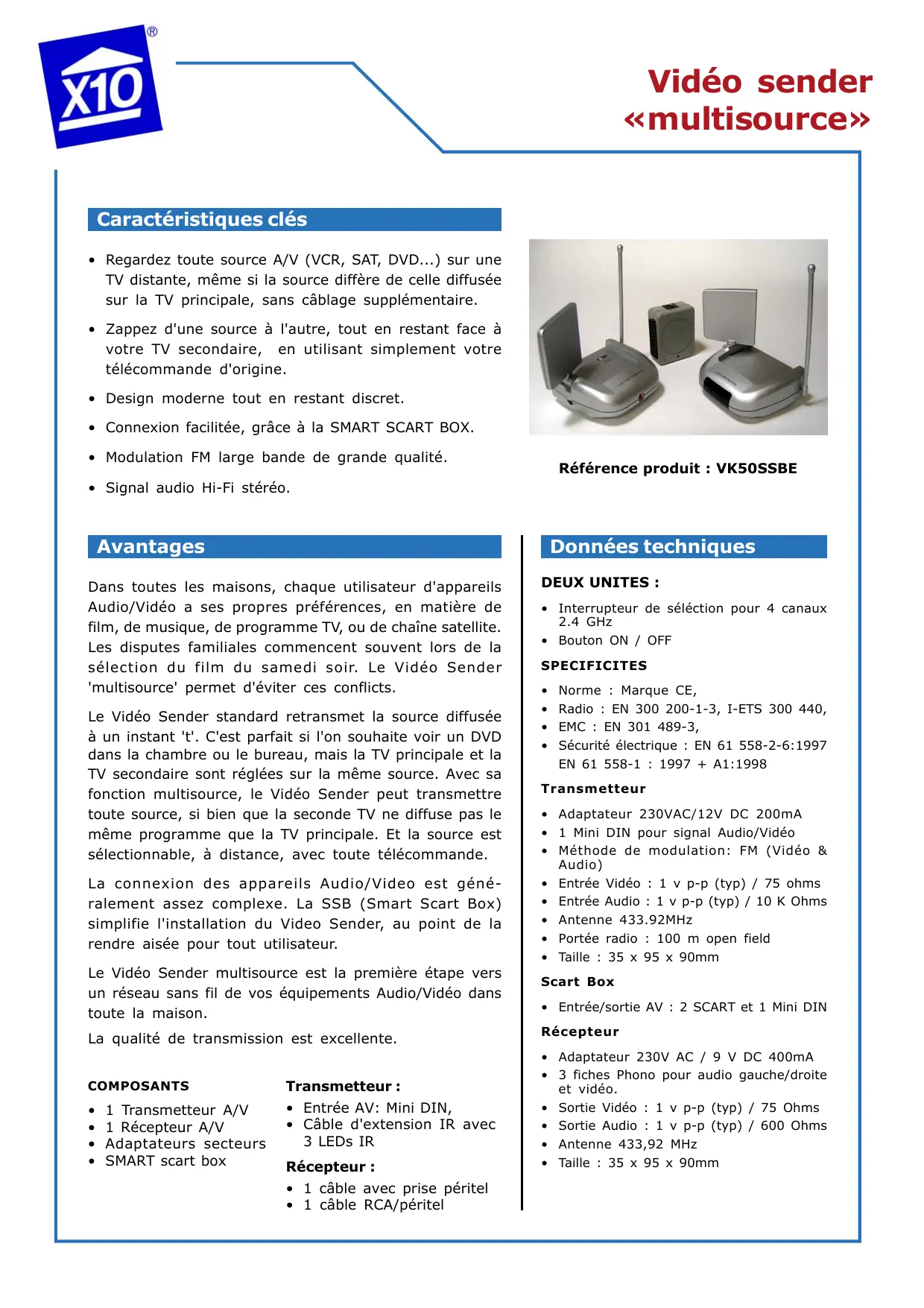 VK50SSBE - Émetteur vidéo sans fil X10 - Notice d'utilisation et mode d'emploi gratuit