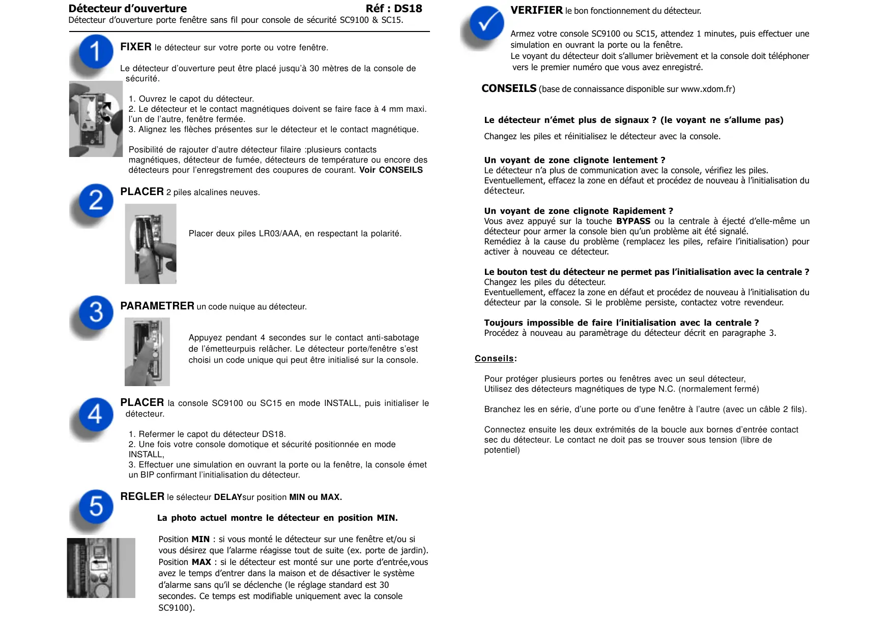 DS18 - Détecteur d'ouverture X10 - Notice d'utilisation et mode d'emploi gratuit