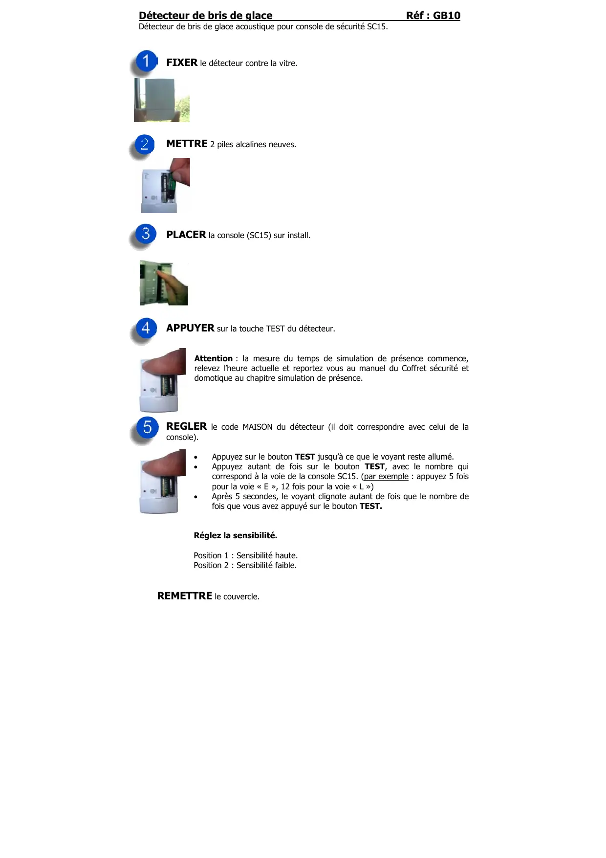 La console ne pourrait pas être armée si le détecteur GB10 ne valide pas son bon fonctionnement.