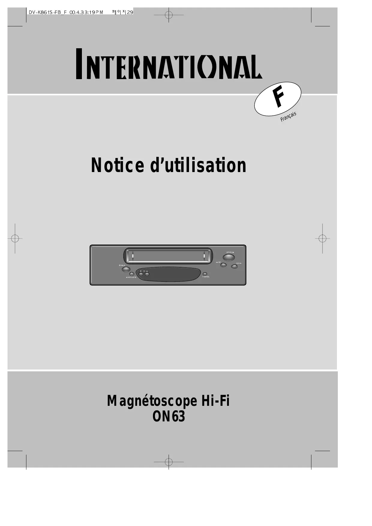 ON63 - Magnétoscope INTERNATIONAL - Notice d'utilisation et mode d'emploi gratuit