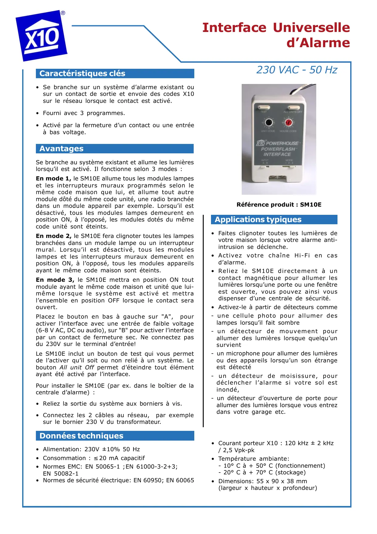 SM10 - Alarme X10 - Notice d'utilisation et mode d'emploi gratuit