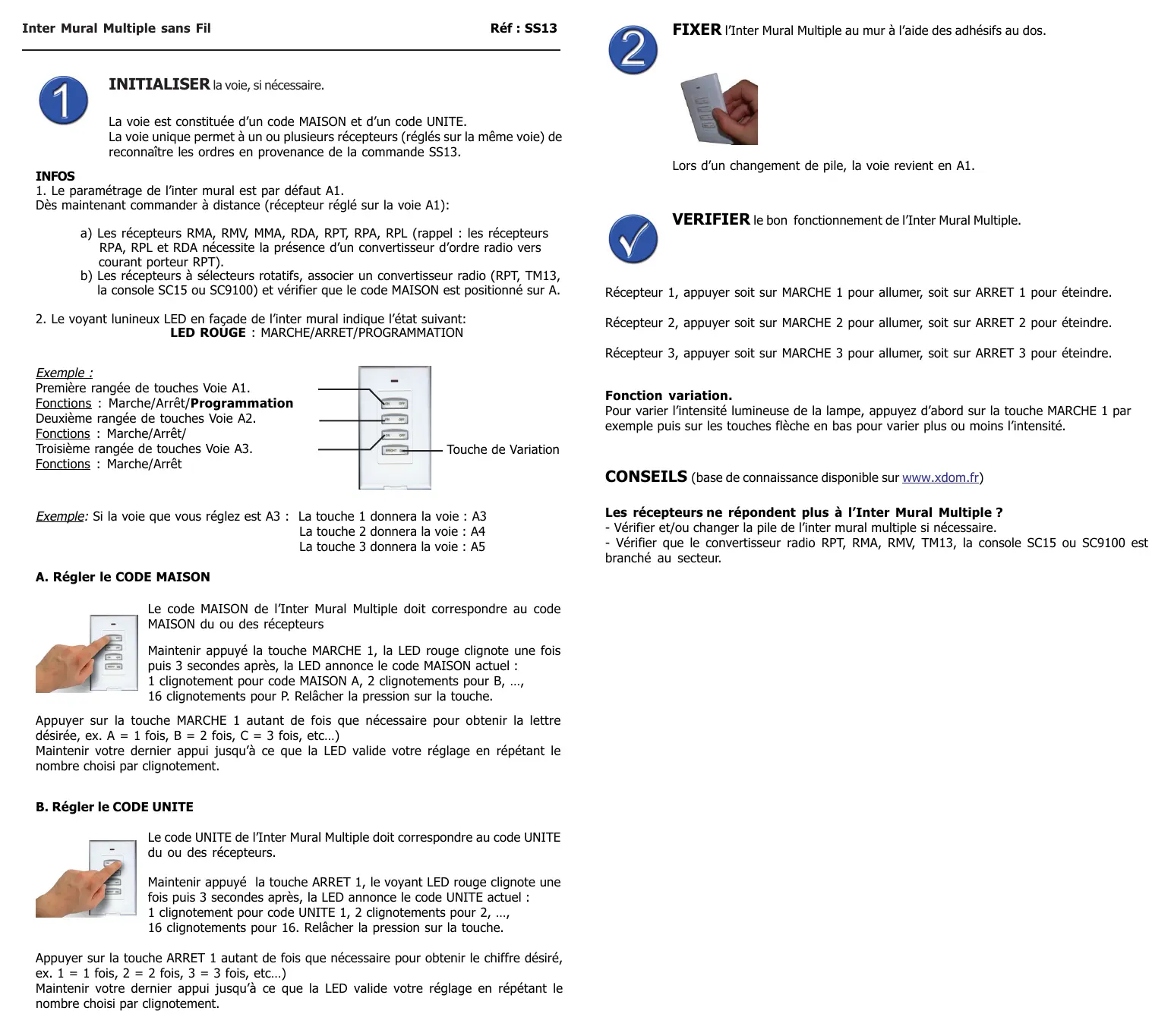 La voie est constituée d'un code MAISON et d'un code UNITE. La voie unique permet à un ou plusieurs récepteurs (réglés sur la même voie) de reconnaître les ordres en provenance de la commande SS13.