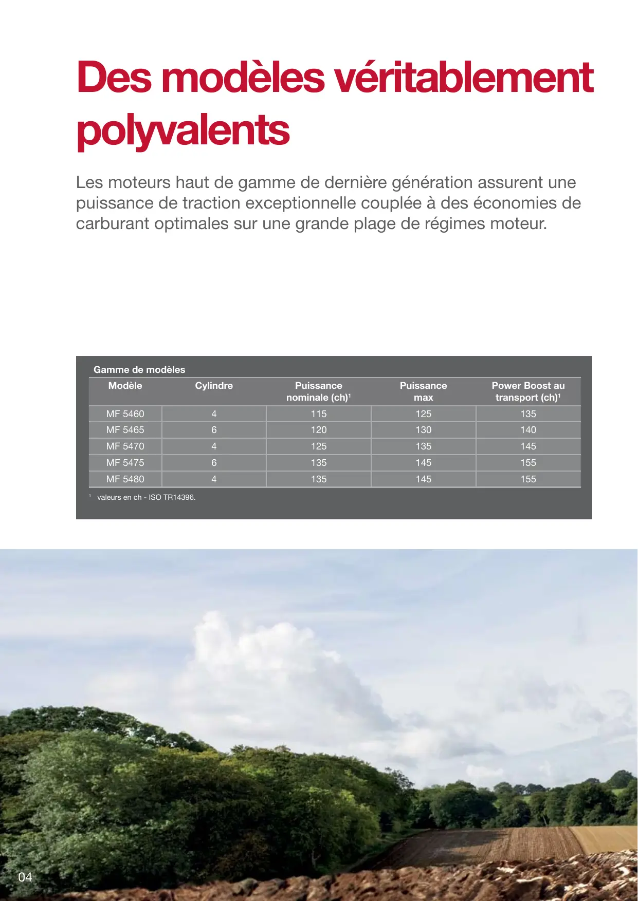 01 Encore plus deCHOix - la série MF 5400 comprendforcément un tracteur parfaitement adapté à votreexploitation.