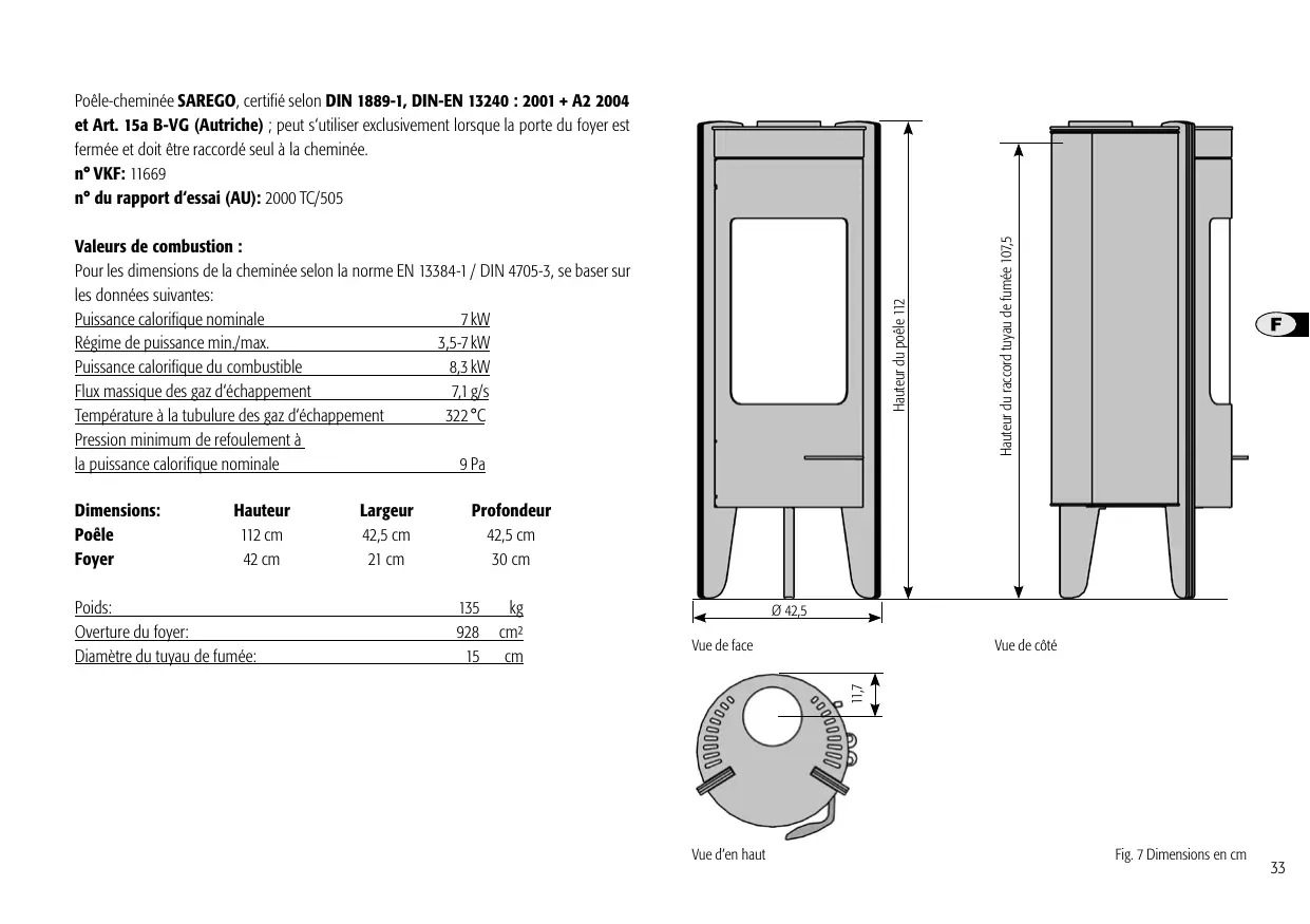 | Caractéristiques techniques principales | Poêle à convection avec un design moderne et épuré, en acier et en fonte. |