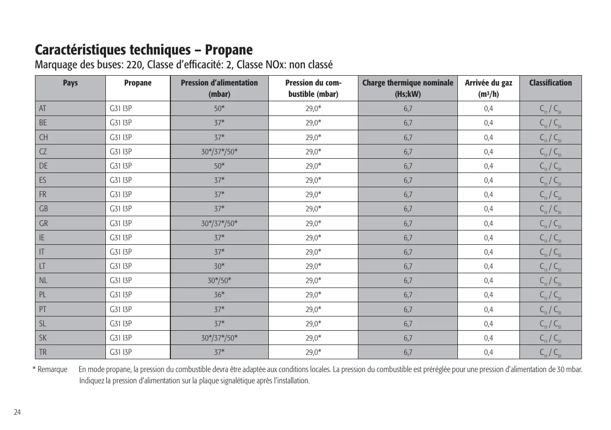 flamme pilote permanente voyez les caractéristiques techniques au début de ce manuel d’installation