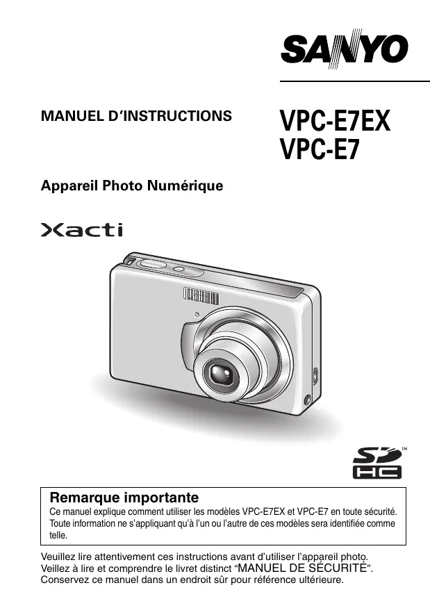 Retrouvez gratuitement la notice de l'appareil XACTI VPC-E7 LOGICOM-SANYO au format PDF.