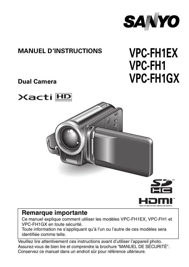 Ce manuel explique comment utiliser les modèles VPC-FH1EX, VPC-FH1 et VPC-FH1GX en toute sécurité.