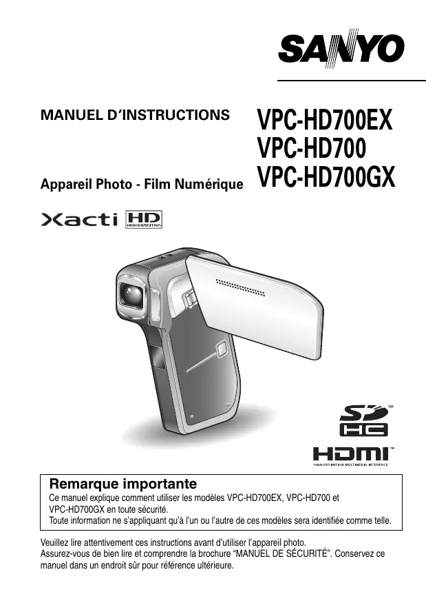 Ce manuel explique comment utiliser les modèles VPC-HD700EX, VPC-HD700 et