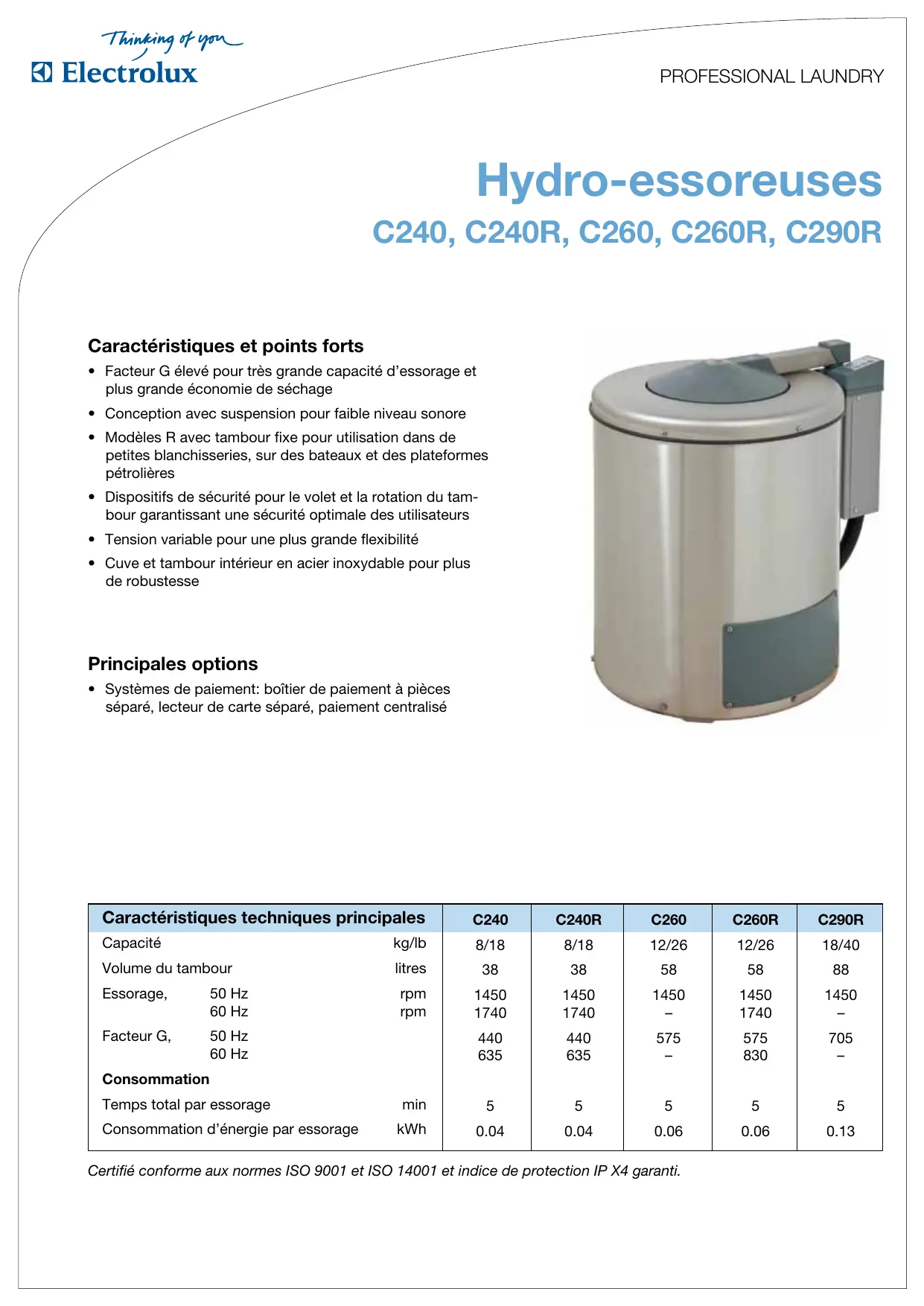 - Facteur G élevé pour très grande capacité d'essorage et plus grande économie de séchage