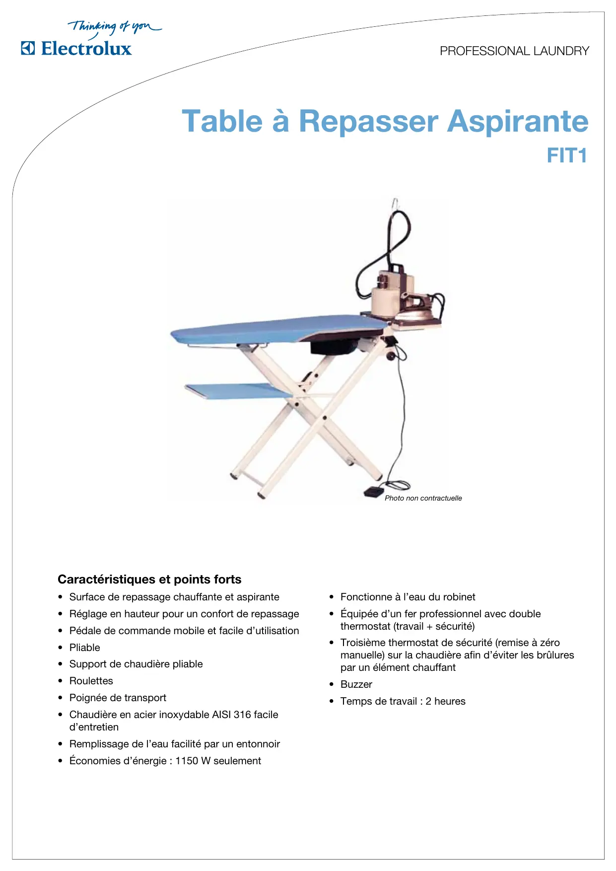 - Équipée d'un fer professionnel avec double thermostat (travail + sécurité)