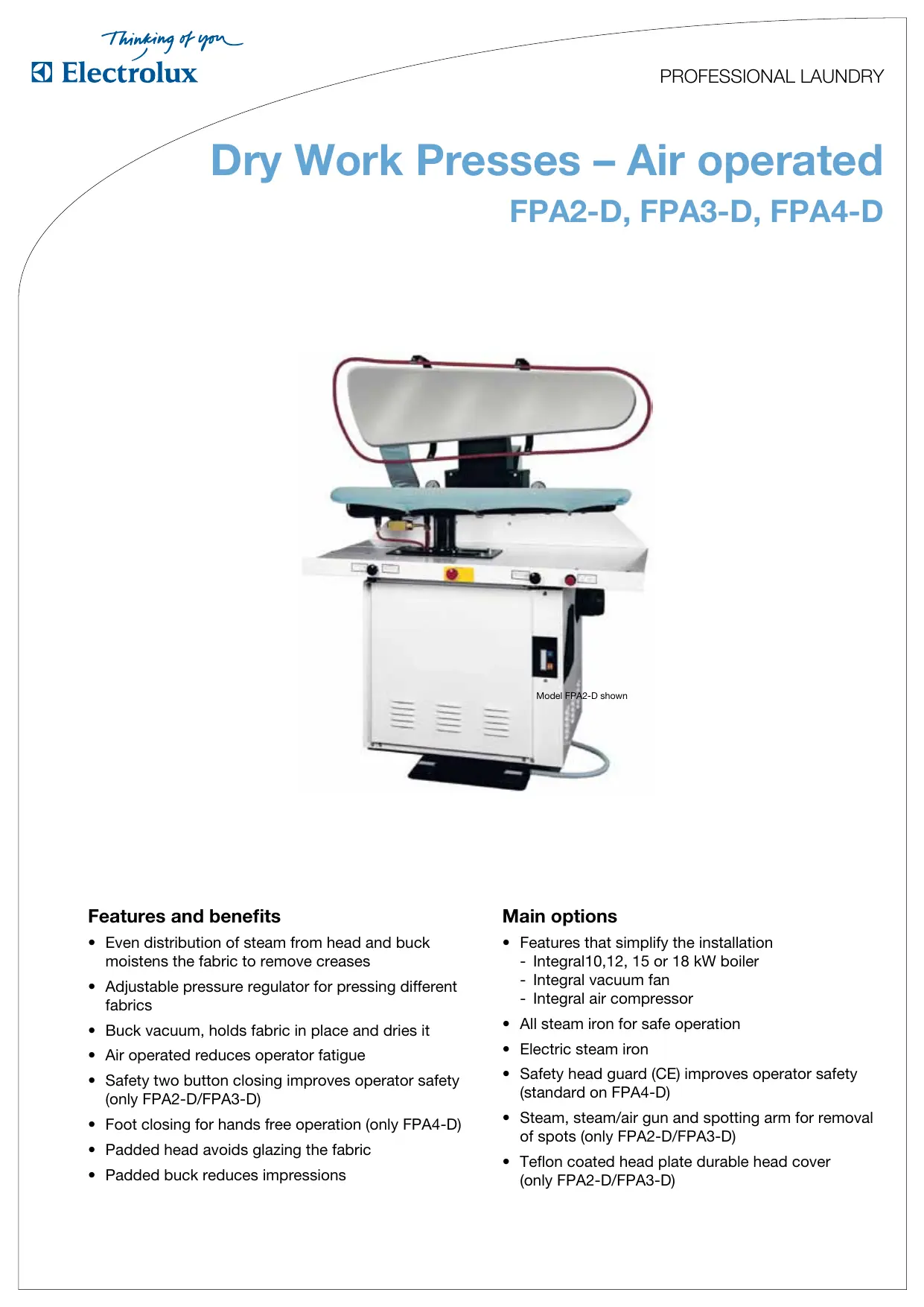 Retrouvez gratuitement la notice de l'appareil FPA2-D ELECTROLUX LAUNDRY SYSTEMS au format PDF.