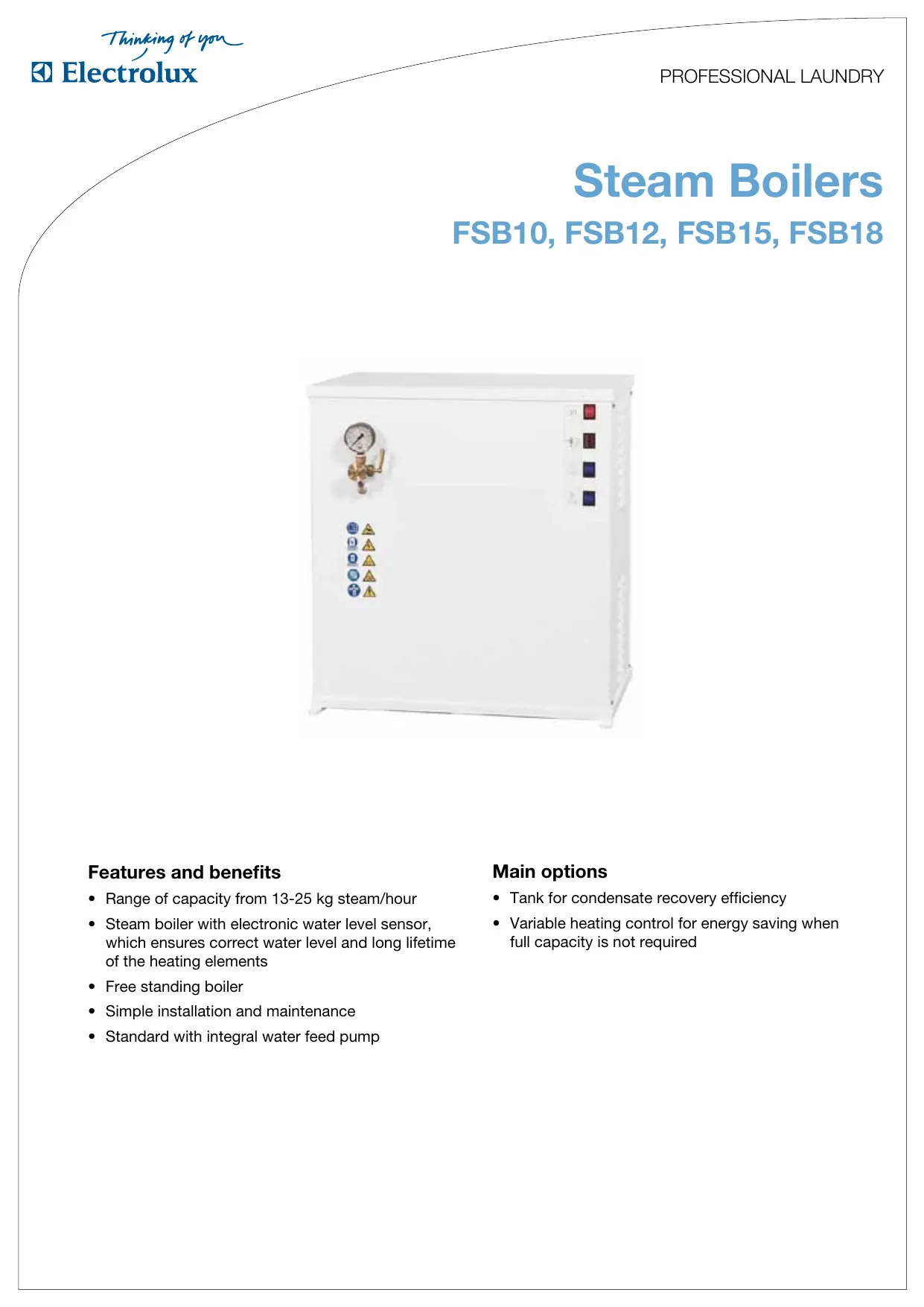 FSB12 - Chaudière à vapeur ELECTROLUX LAUNDRY SYSTEMS - Notice d'utilisation et mode d'emploi gratuit