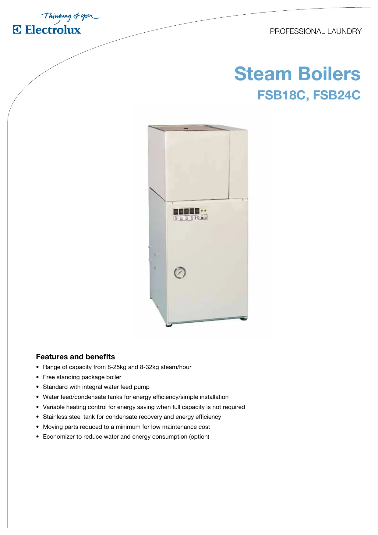 FSB18C - Chaudière à vapeur ELECTROLUX LAUNDRY SYSTEMS - Notice d'utilisation et mode d'emploi gratuit