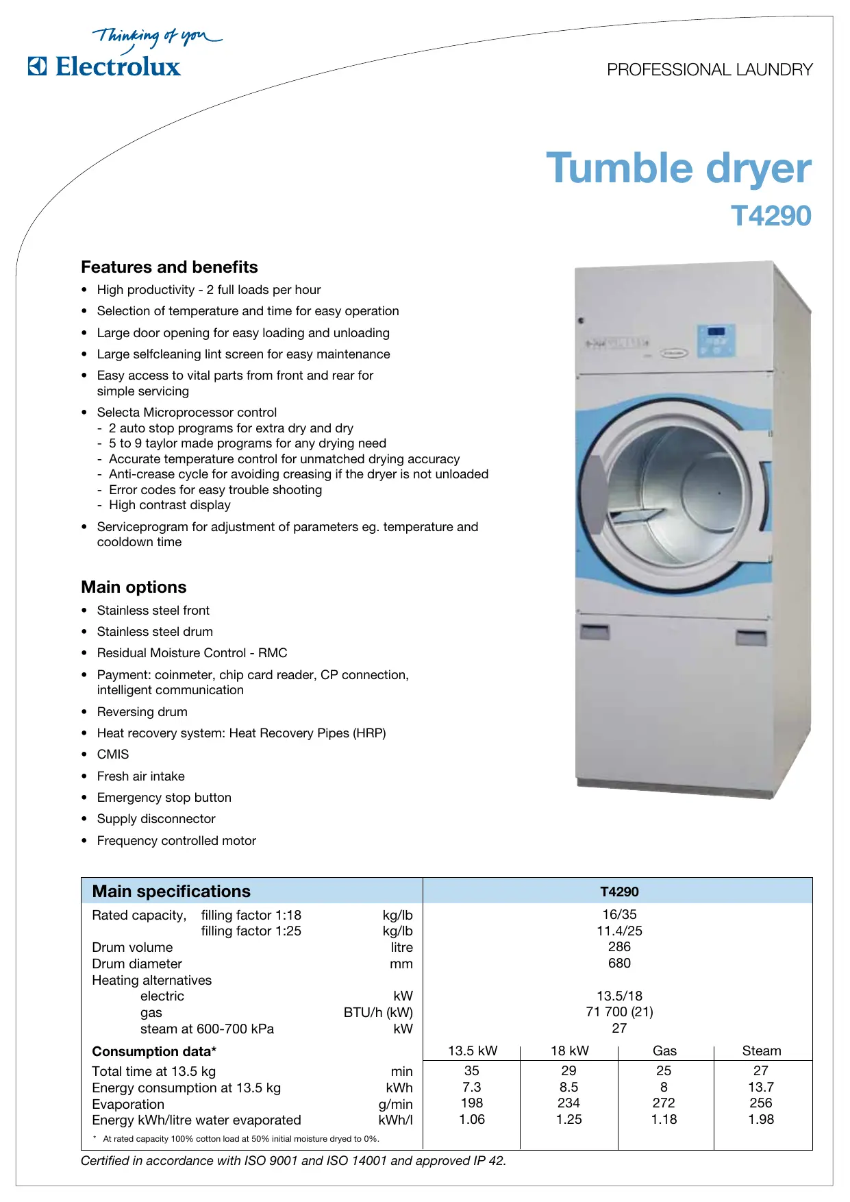 Questions des utilisateurs sur T4290 ELECTROLUX LAUNDRY SYSTEMS