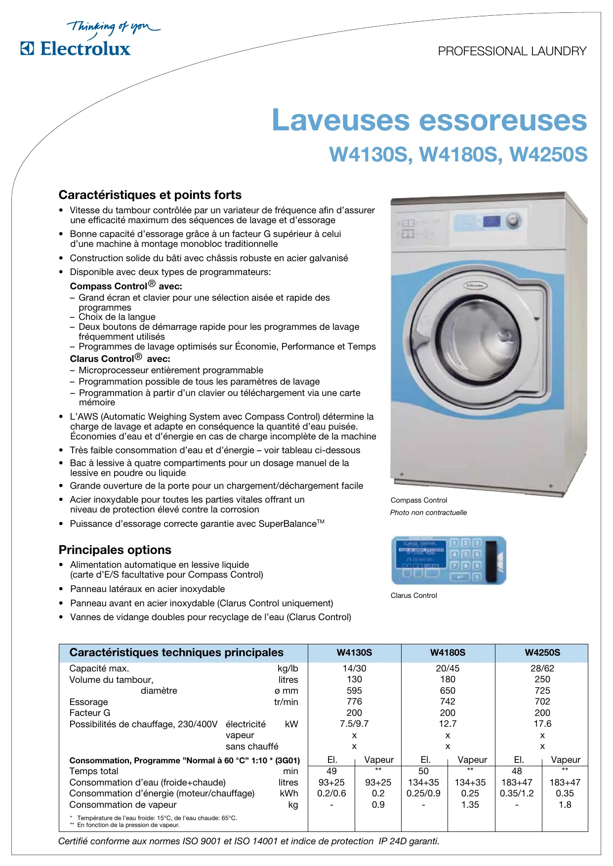 - Vitesse du tambour contrôle par un variateur de fréquence afin d'assurer une efficacité maximum des séquences de lavage et d'essorage