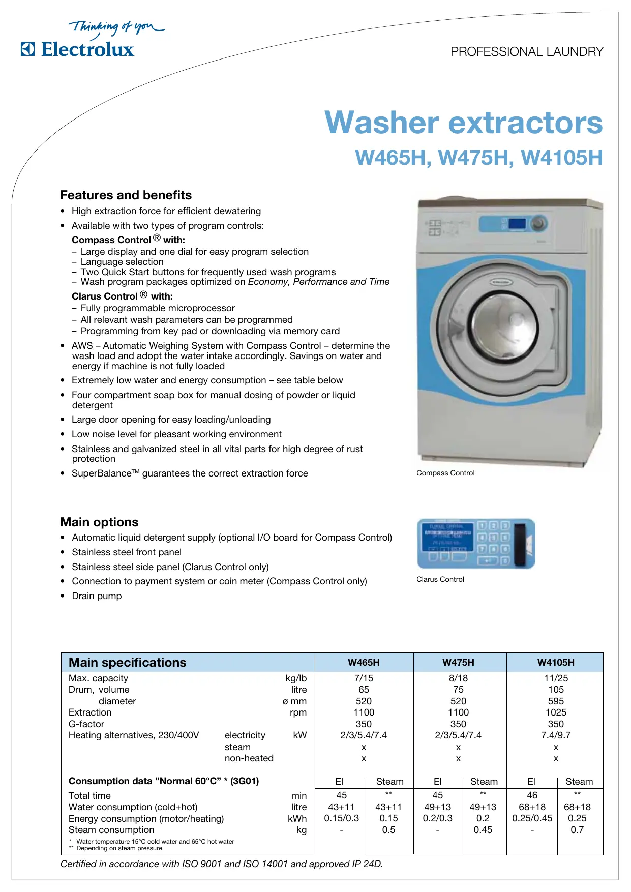 W475H - Lave-linge professionnel ELECTROLUX LAUNDRY SYSTEMS - Notice d'utilisation et mode d'emploi gratuit