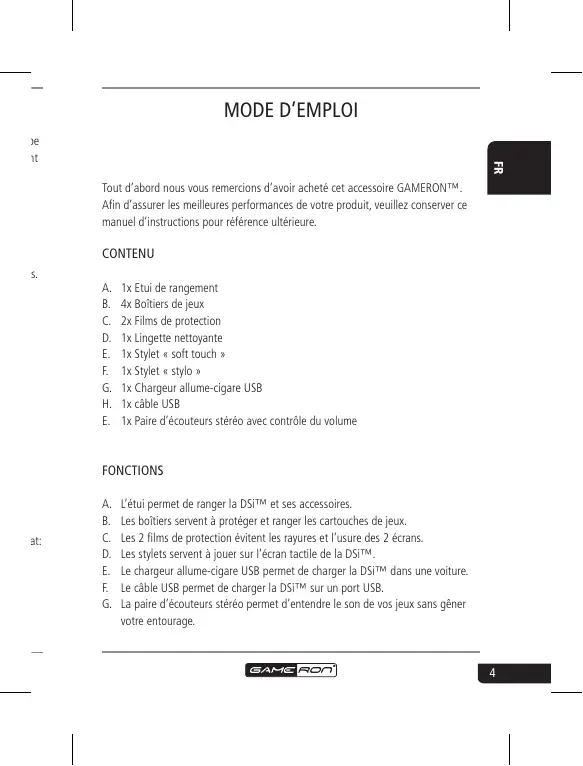 INTERMEDIATE PACK DSI COMPATIBLE - Accessoires de jeu GAMERON - Notice d'utilisation et mode d'emploi gratuit