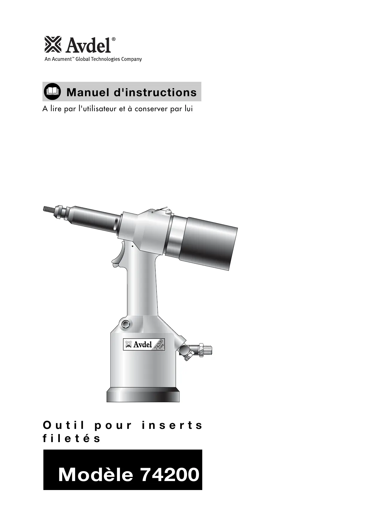 X Avdel' An Acument" Global Technologies Company Q Manuel d'instructions A lire par l'utilisateur et à conserver par lui X Avdel à Outil pour inserts filetés Modèle 74200