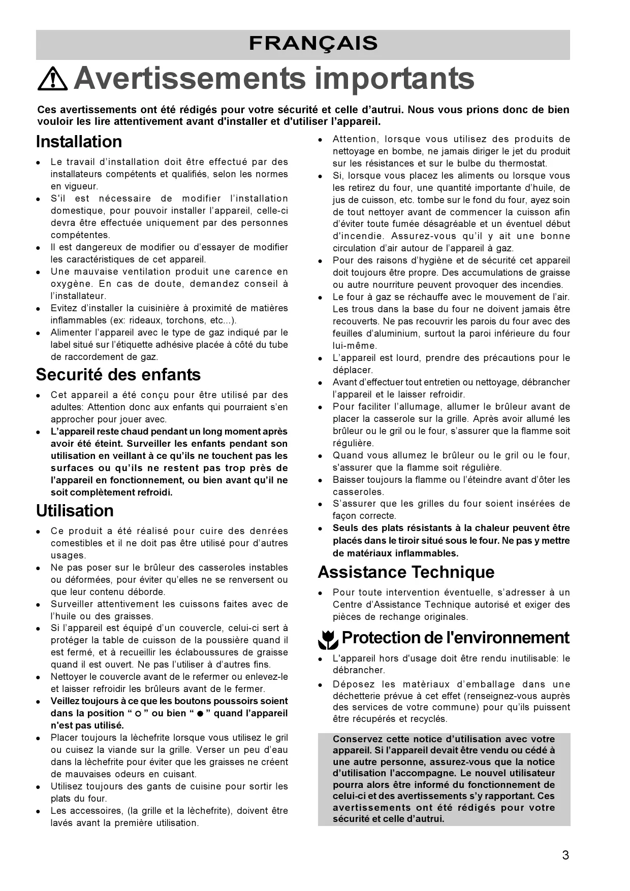 - Pour des raisons d'hygiene et de sécurité cet apparéil doit toujours être propre. Des accumulations de graisse ou autre nourriture peuvent provoquer des incendies.