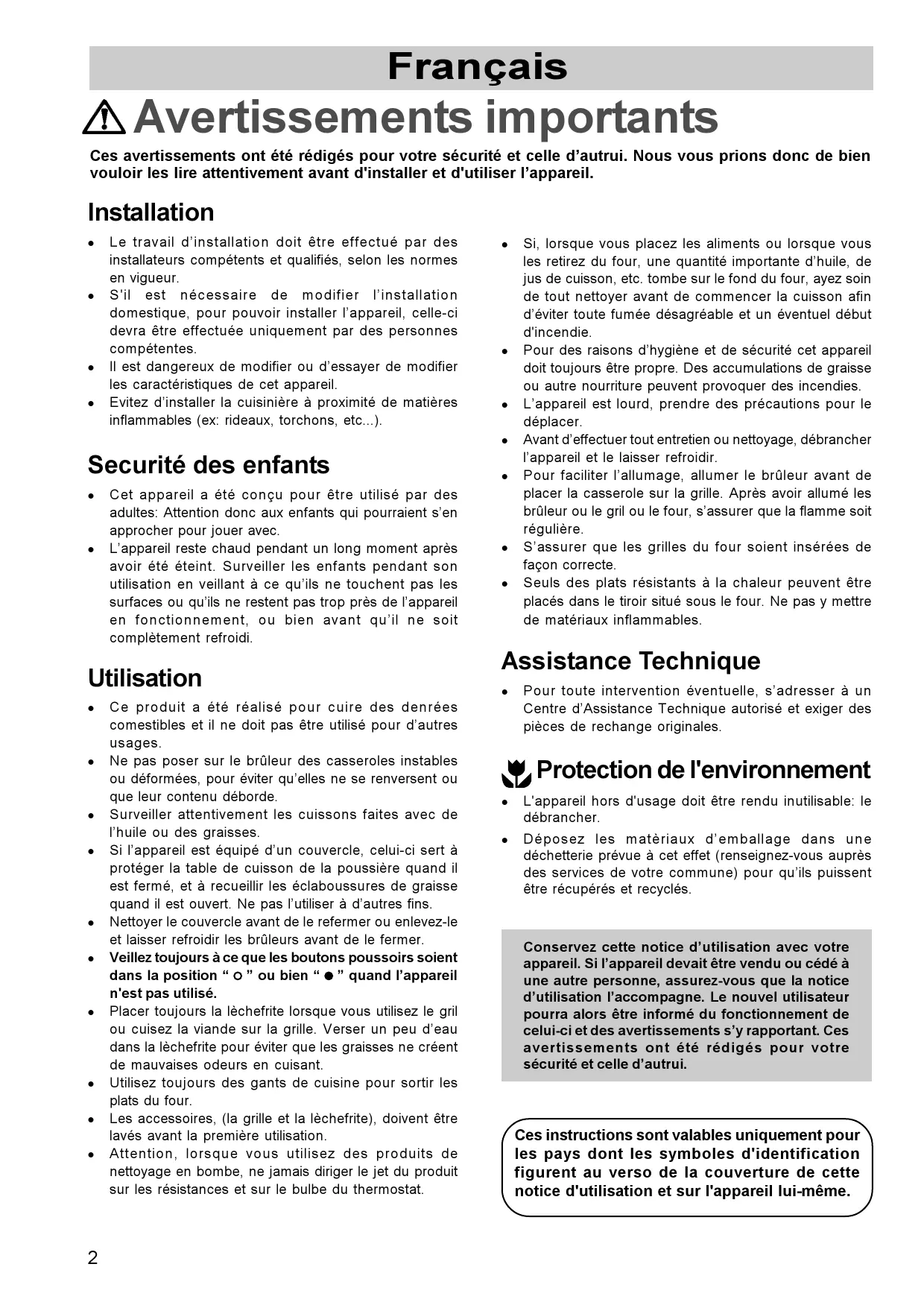 Ces avertissements ont ete redigés pour voite sccurté et celle d'autrui. Nous you prions donc de bien fouloir les lire attentivement avant dinstaller et d'utiliser l'appareil.