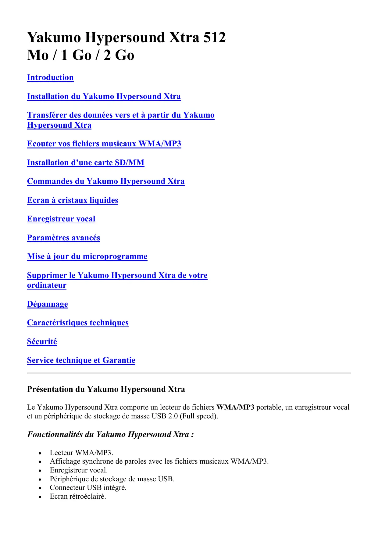 HYPERSOUND XTRA - Lecteur audio portable YAKUMO - Notice d'utilisation et mode d'emploi gratuit
