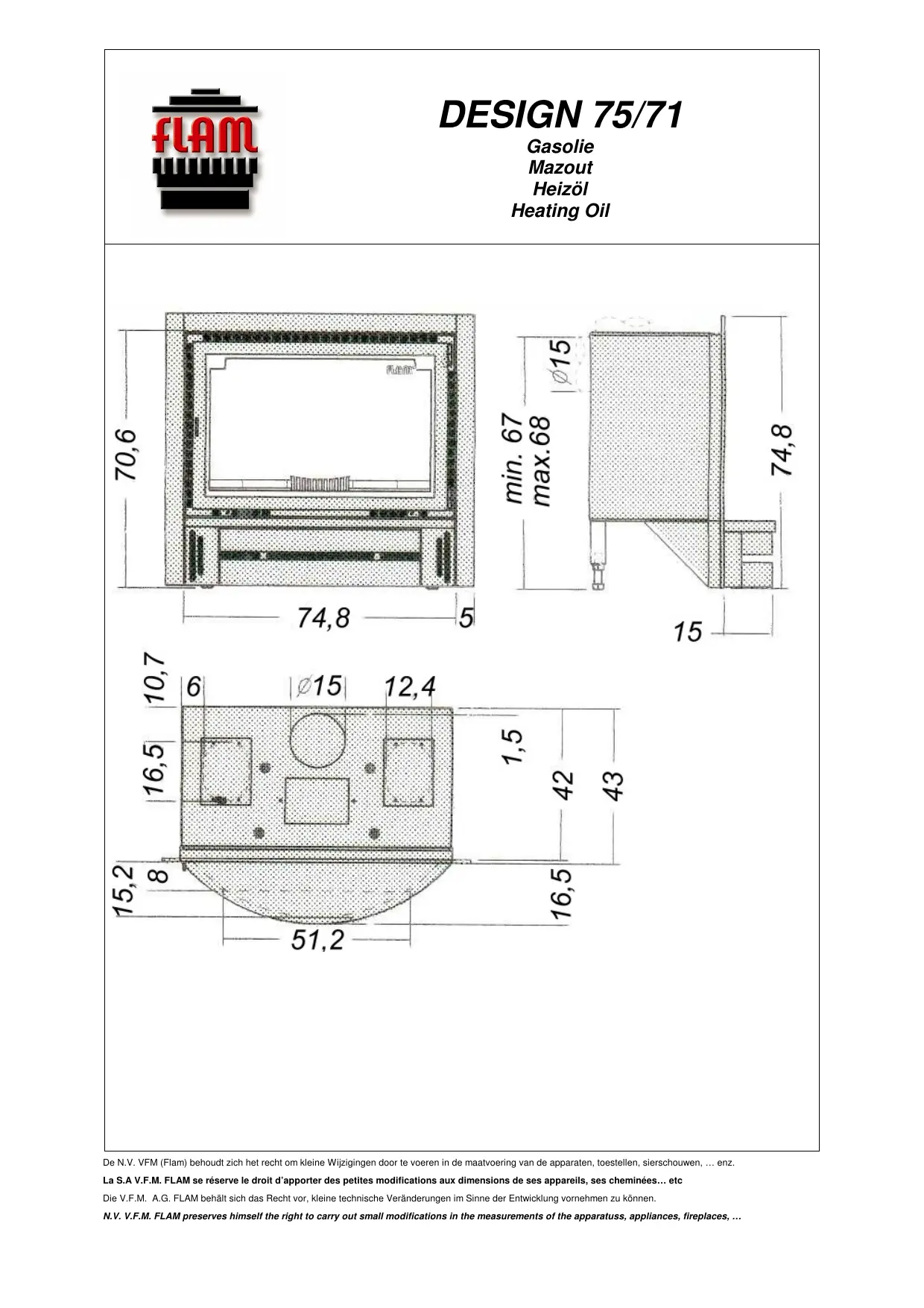 DESIGN 75-71 - Poêle à combustible liquide FLAM - Notice d'utilisation et mode d'emploi gratuit