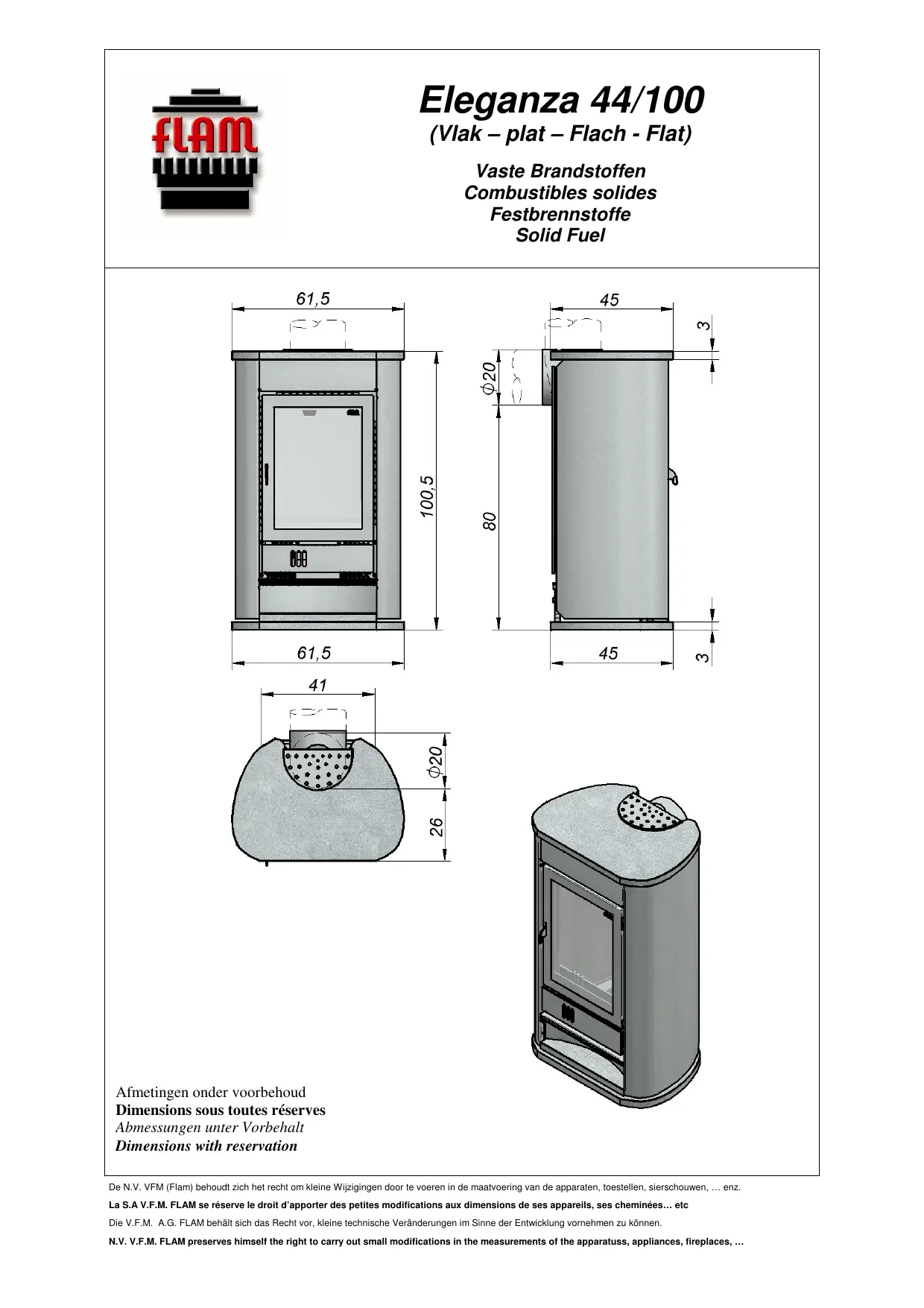 ELEGANZA 44-100 - Poêle à bois FLAM - Notice d'utilisation et mode d'emploi gratuit