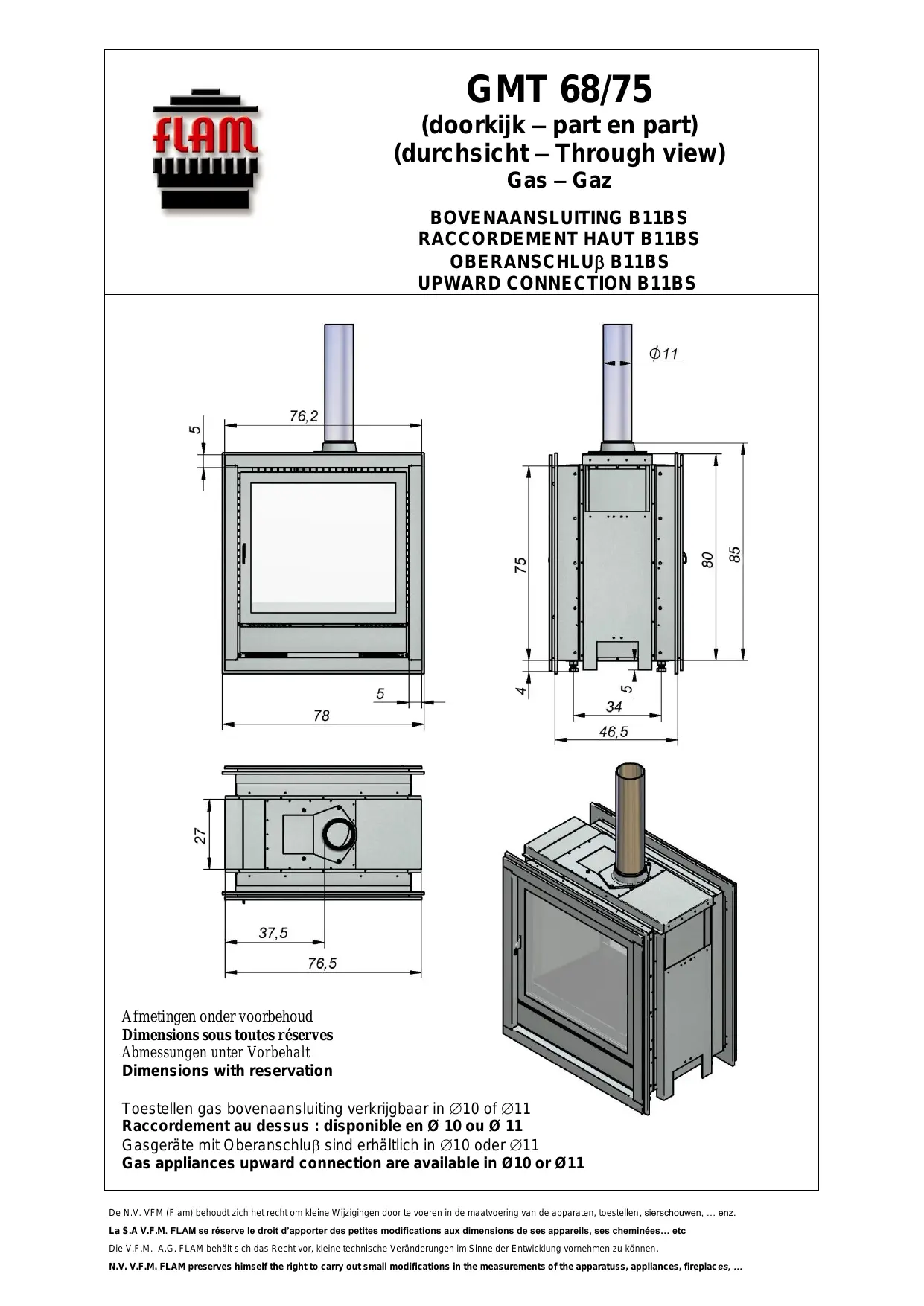 GMT 68-75 - Cheminée à gaz FLAM - Notice d'utilisation et mode d'emploi gratuit
