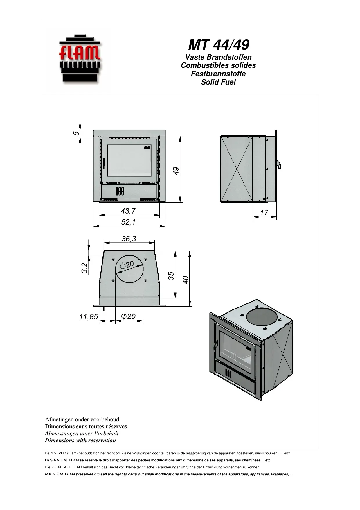 MT 44-49 - Poêle à bois FLAM - Notice d'utilisation et mode d'emploi gratuit